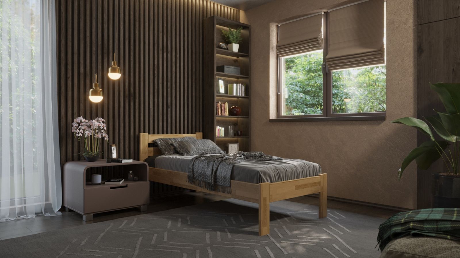 Egyszemélyes tömörfa ágy Antony, 90x200 cm, Tölgy, DO 201