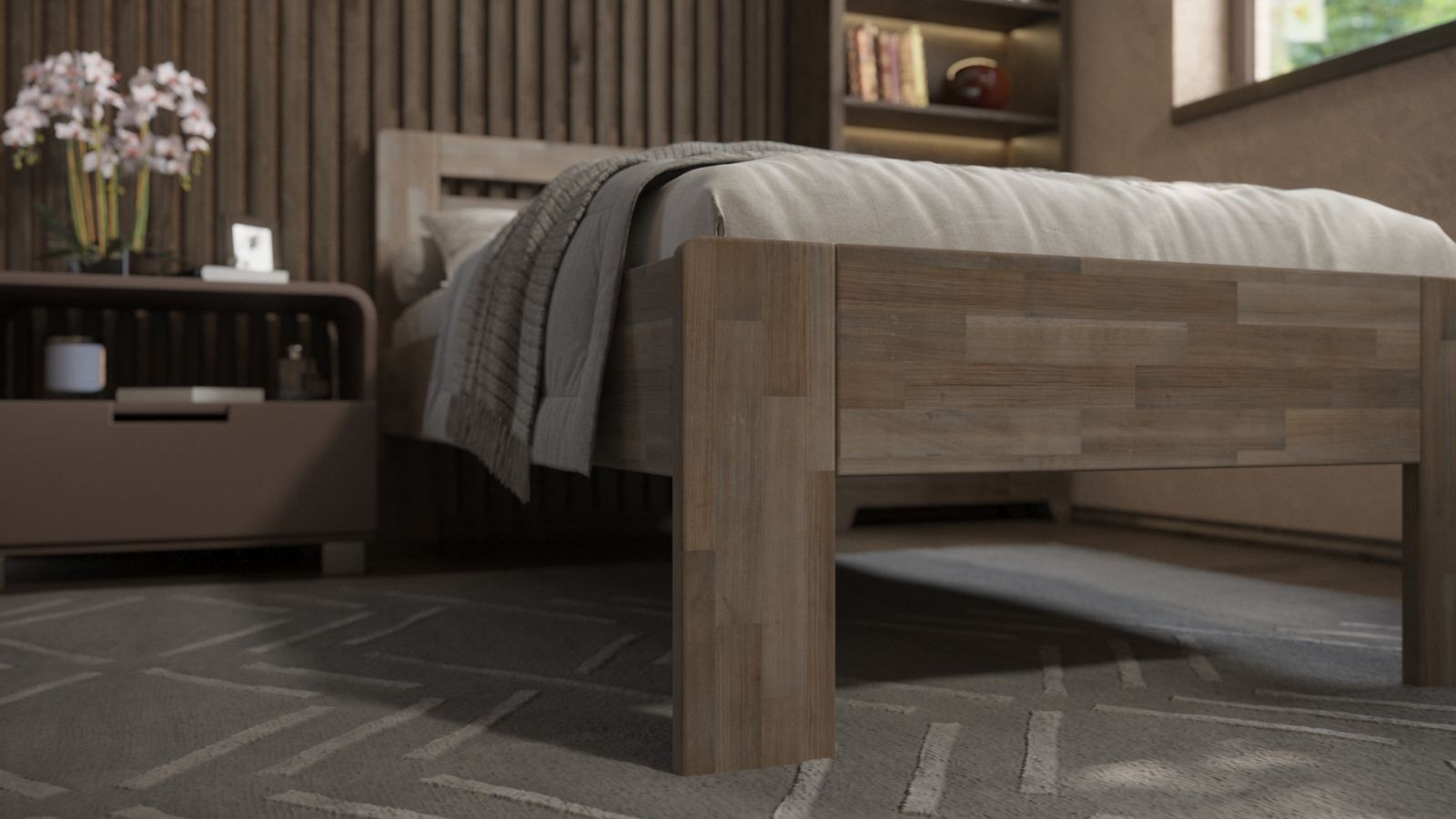 Jona egyszemélyes tömörfa ágy, 80x200 cm, Bükkfa, BO 105