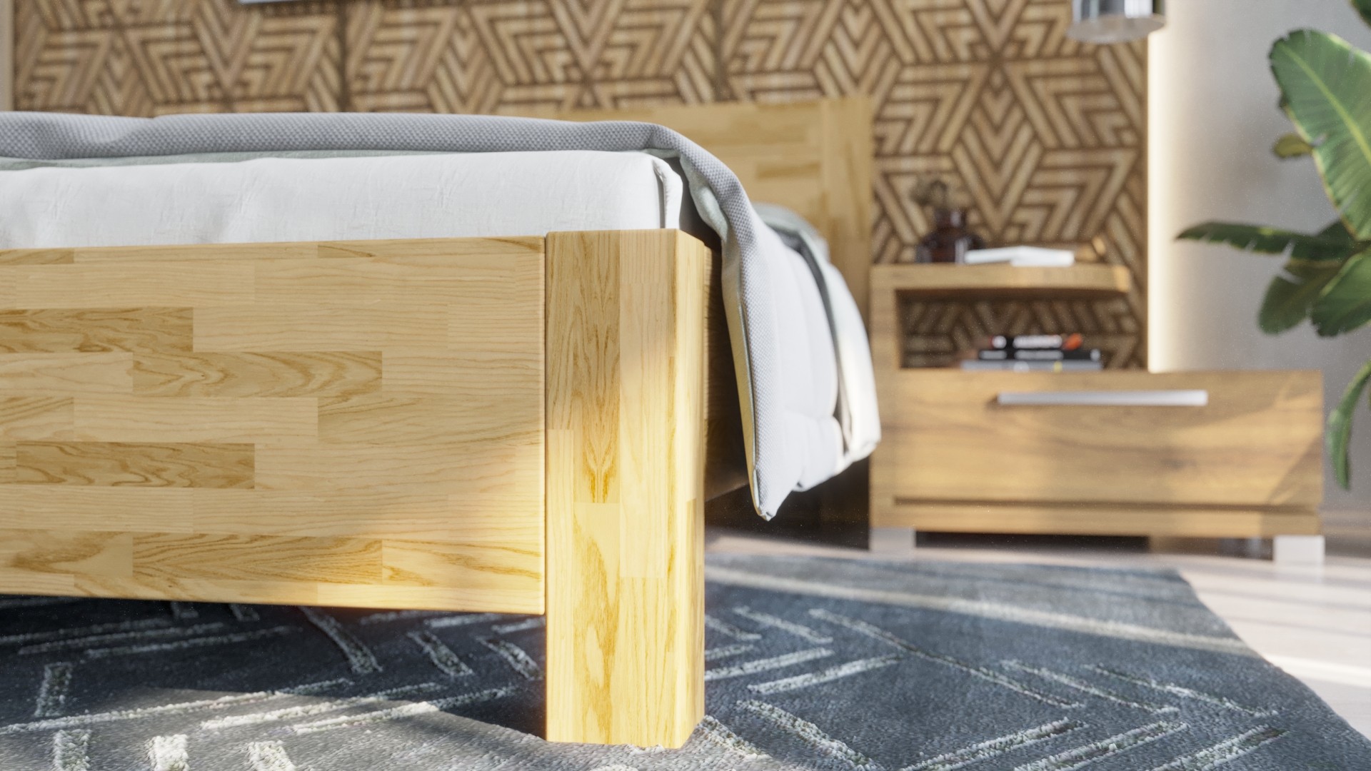 Tömörfa ágy Olten, 200x220 cm, Tölgy, DO 201, Módosítások nélkül