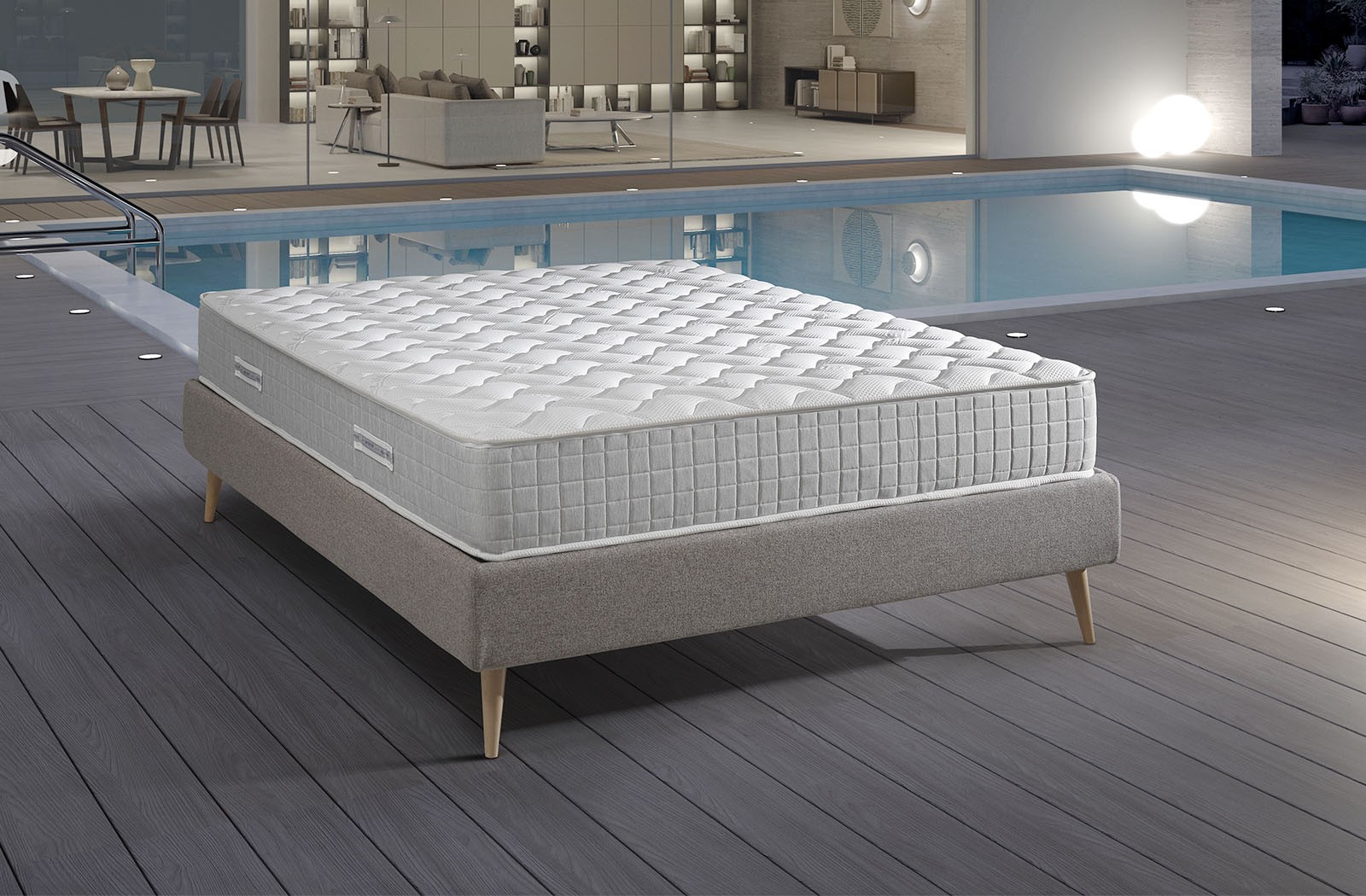 Kényelmes magasságú kétszemélyes matrac ezüsttel a huzatjában